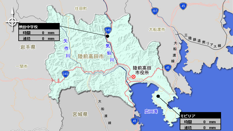 観測局の記号をマウスでクリックすると、雨量経過表へ遷移します。